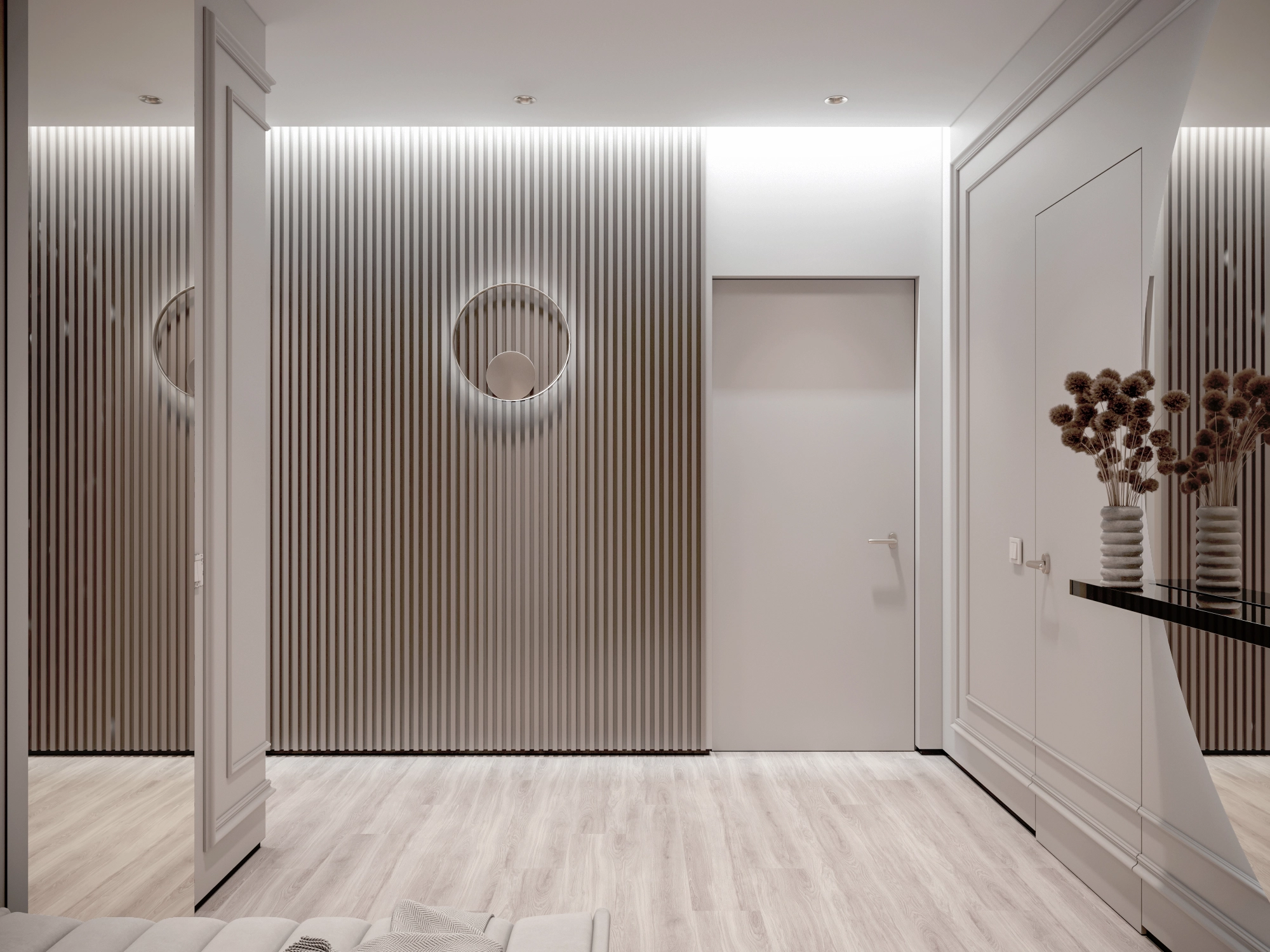 Apartamentul contine o combinatie dintre stil modern și minimalist, combinat cu elemente luxoase. Accentul cade pe linii simple, curate și pe utilizarea materialelor premium, care adaugă rafinament spațiului.